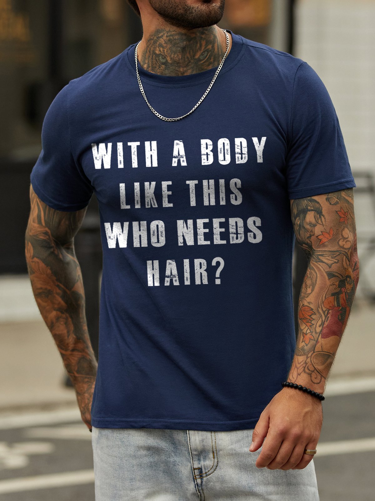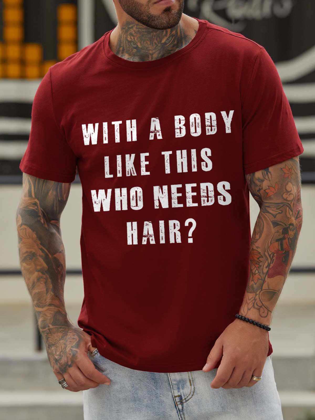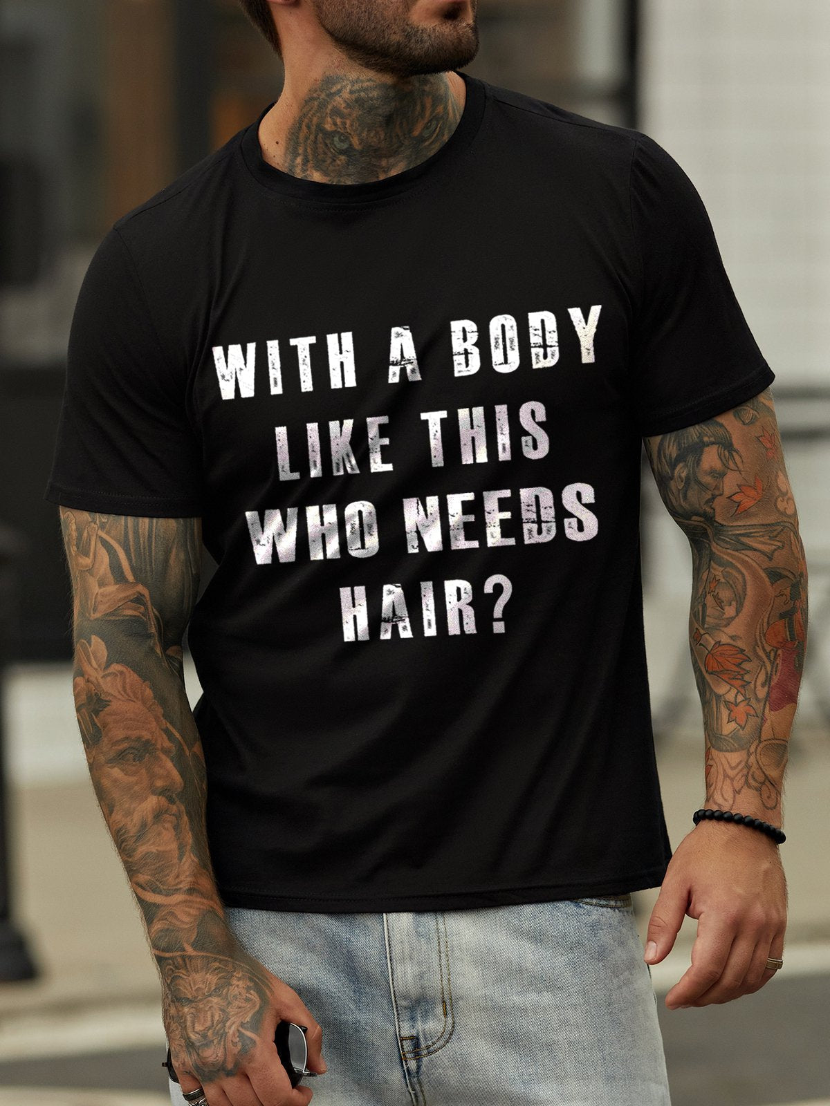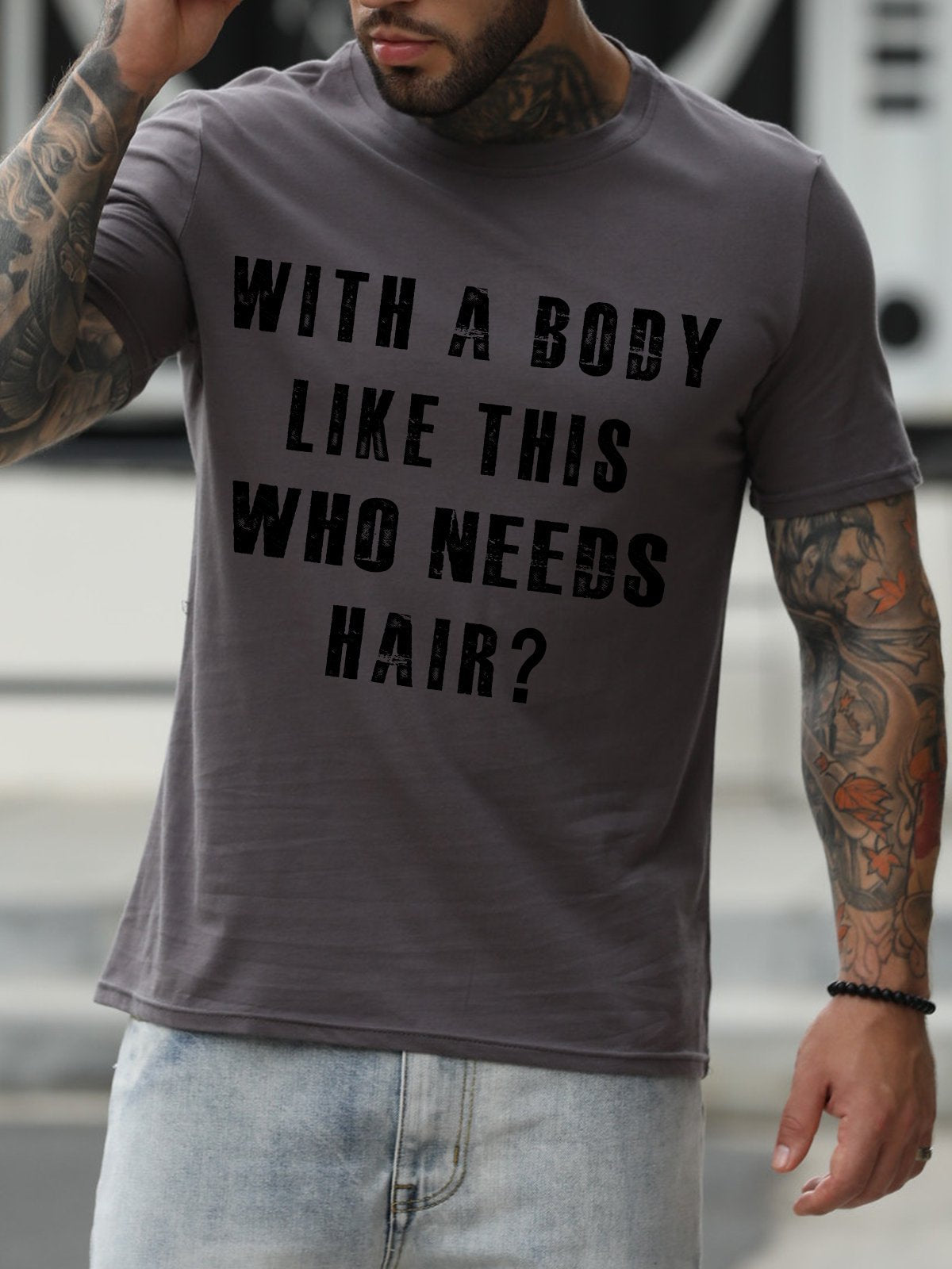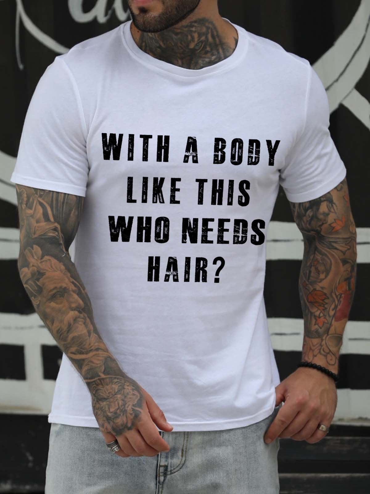 With A Body Like This Who Needs Hair Crew Neck Short Sleeve Cotton Blends T-shirt